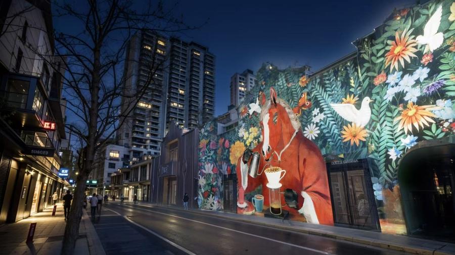 內容:走在南京西路抬頭看,能在多個巨幅屏幕上看到活動聯動悲鴻作品所創作的光影奔馬的賀歲影片,讓大家走在靜安區,隨時隨地都能感受亮麗的城市天空。