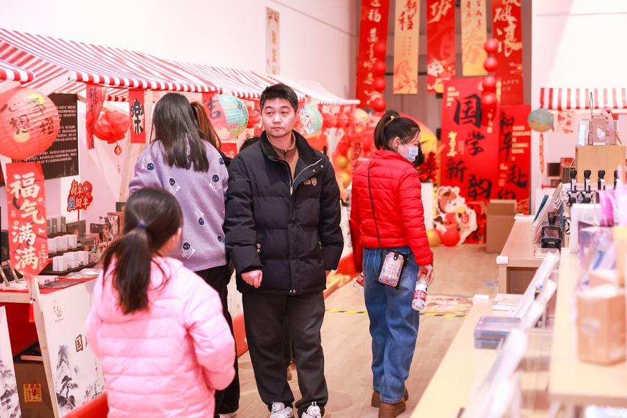 “這個吉祥玩偶用手機NFC功能掃一掃,可在線求籤,跳出很多新年祝福。”90後馮先生準備囤幾個不同造型的“電子年貨”送朋友。走進上海24小時和平書院,新揭幕的“國風新次元——新春文創潮玩第一展”吸引許多市民駐足選購心儀的年貨伴手禮。