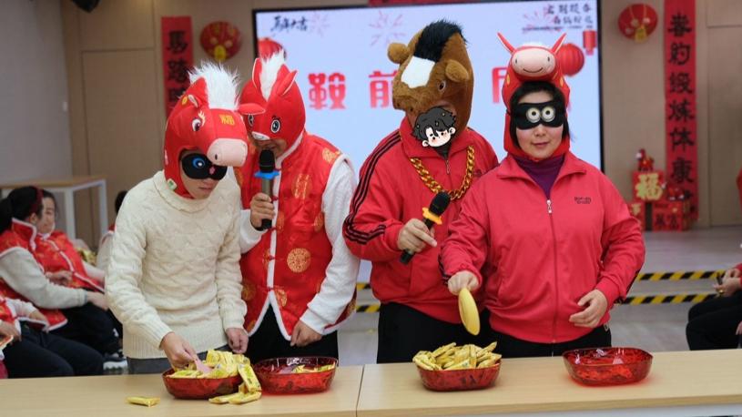 在互動環節,與“馬”相關的遊戲頗受歡迎——“一馬當先”,讓學員們手持扇子驅趕“小馬”競速;“鞍前馬後”,讓矇眼學員在同伴指引下用勺子運送“糧草”,考驗配合能力。