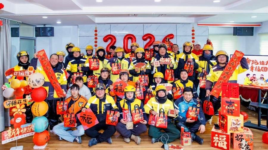 “平時風裏來雨裏去,過年也只能在路上趕單,沒想到這裏比家裏還熱鬧、還暖心。”一位騎手捧着社工辦精心準備的年夜飯大禮包由衷感慨。簡單的話語裏,藏着常年奔波的不易,也透着被城市溫柔以待的感動。喫完熱餃,騎手們自發拎起裝滿餃子的餐盒,把這份暖意送到轄區獨居、高齡、行動不便的老人家中,讓一份關懷、兩份溫暖,從“紅色加油站”一路送至“家門口”。