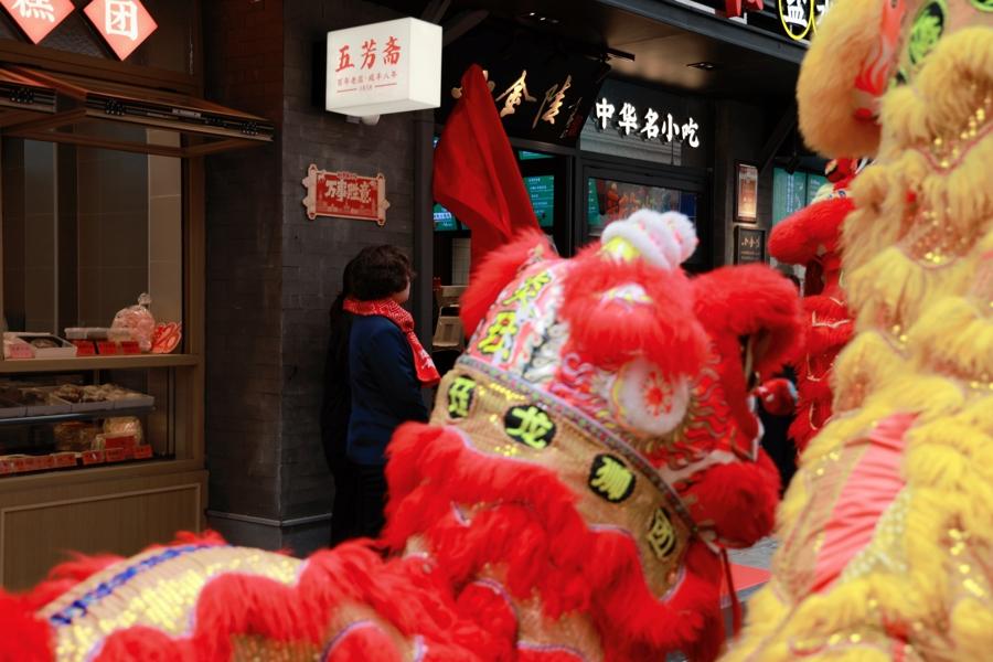 開街儀式上,祥獅歡舞,爲每家老字號點睛採青,寓意着吉祥與嶄新的開始。老字號集體入駐南京路沿線支馬路,實現了一次“雙贏”的融合。