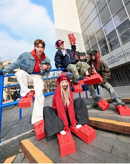 百聯TX淮海打造了“跨界+展覽+新品”矩陣,構建起一個微型文化消費生態。以Crocs卡駱馳與樂高集團的合作爲例,聯名之上,雙方特邀樂高專業認證大師蔣晟暉(Prince Jiang)用足足17.2萬塊樂高積木打造了一款巨型樂高積木洞洞鞋模型。整個模型長2.5米,重達500千克,共耗時800小時完成,1月31日在百聯TX淮海戶外廣場一現身,就成了年輕人的打卡熱點,將產品發佈升維爲一場主題鮮明的在地化藝術事件。
