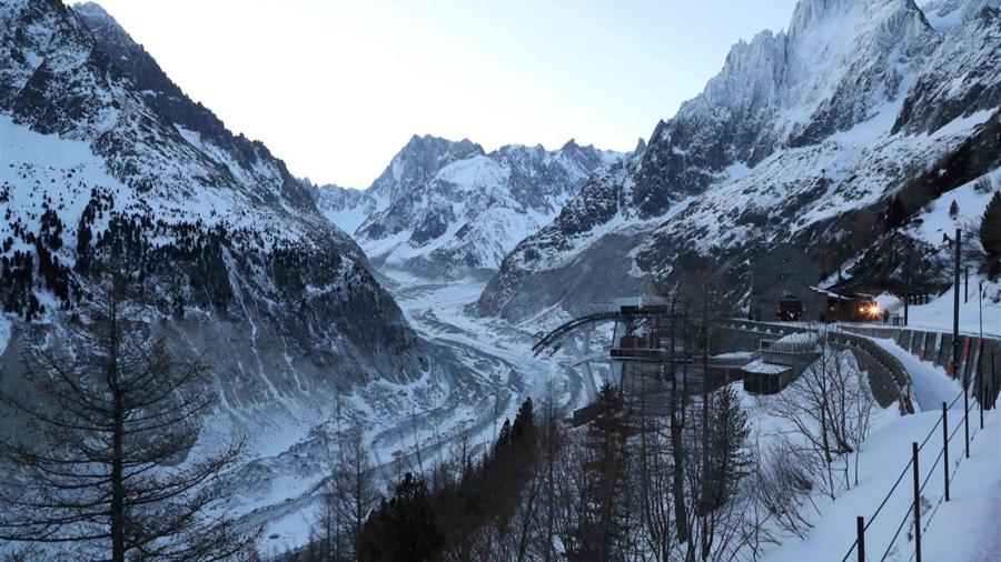 法國阿爾卑斯山勃朗峯山區拍攝的冰川。 (圖源新華社)