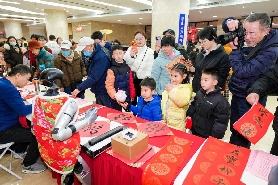 機器人揮毫送“福”字,張江新春遊園會科技年味兩相宜