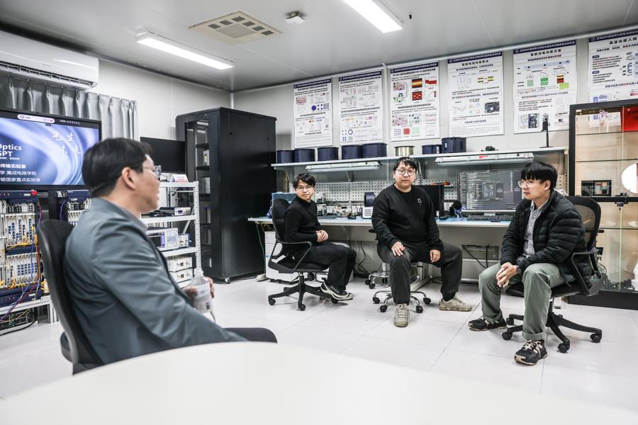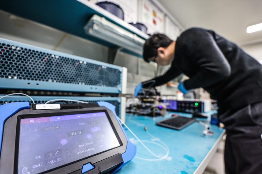 “小光,請幫我做實驗,發射功率1dBm,傳輸距離800公里……”春節臨近,上海交通大學閔行校區集成電路學院智能光傳輸實驗室內,義理林教授與“光生未來”項目組仍在覈準數據、調試設備,有條不紊地忙碌着。