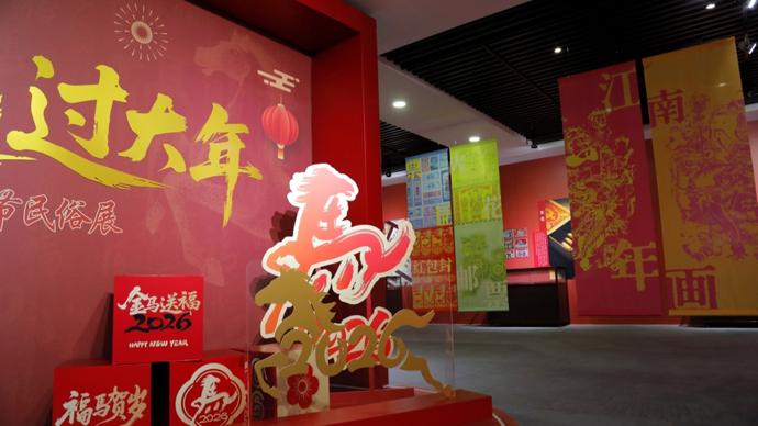 板塊內特設“八市一區”團圓飯特色展區,薈萃江南各地特色年菜,還原地道新春煙火味;展廳內燈籠高掛、福字相映,馬年節慶氛圍濃郁;“福滿全家”拍照打卡點,定格闔家團圓的溫馨瞬間。傳統年俗與現代互動深度融合,讓觀衆在沉浸式體驗中感受新春的熱鬧與溫情。