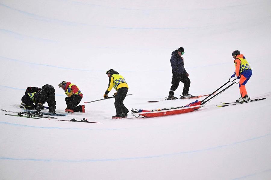崔佳恩首跳受傷,甚至現場出動了擔架雪橇