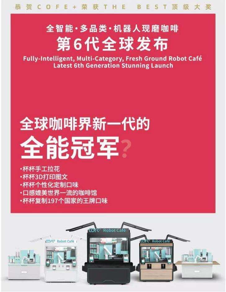 COFE+第六代產品集AI、物聯網、精密機械於一體,被譽爲咖啡機器人領域的“六邊形戰士”: