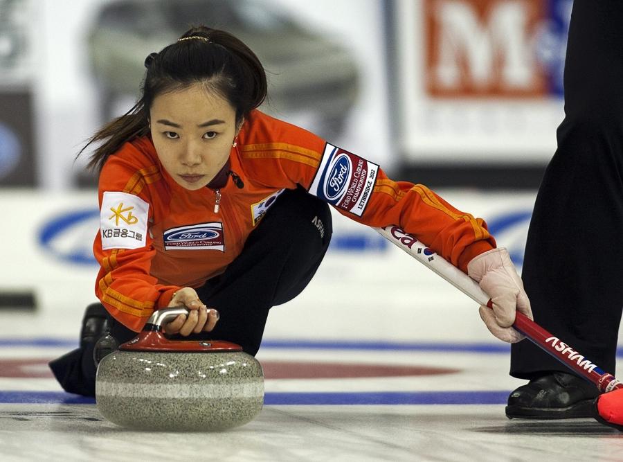 2014年索契冬奧會,金智善代表韓國隊出戰,這是韓國女子冰壺隊首次參加冬奧會(視覺中國)