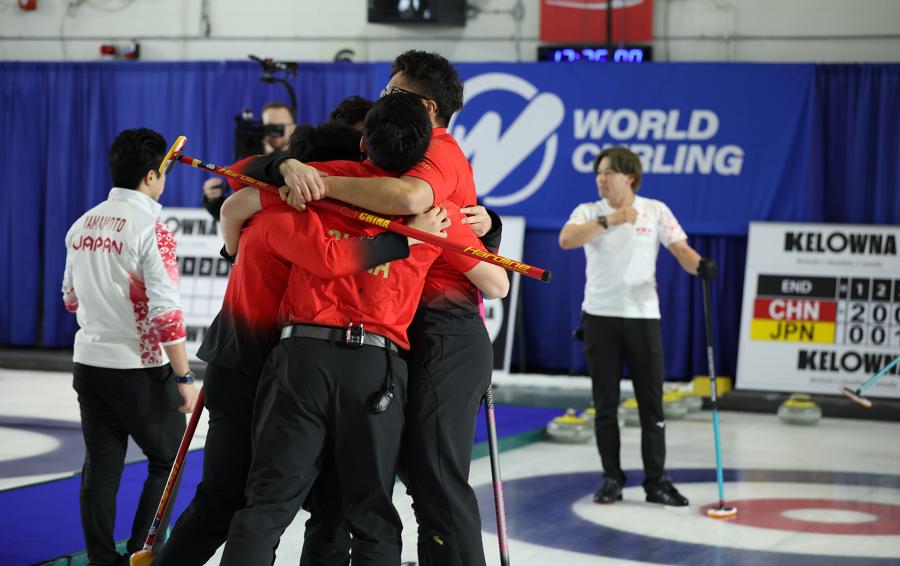中國男子冰壺隊在資格賽最後一戰中戰勝日本隊,壓哨獲得奧運資格(視覺中國)
