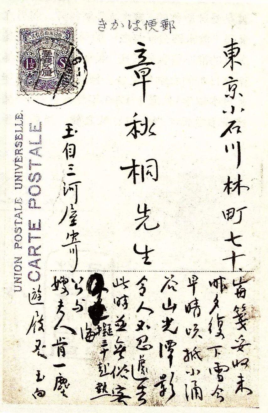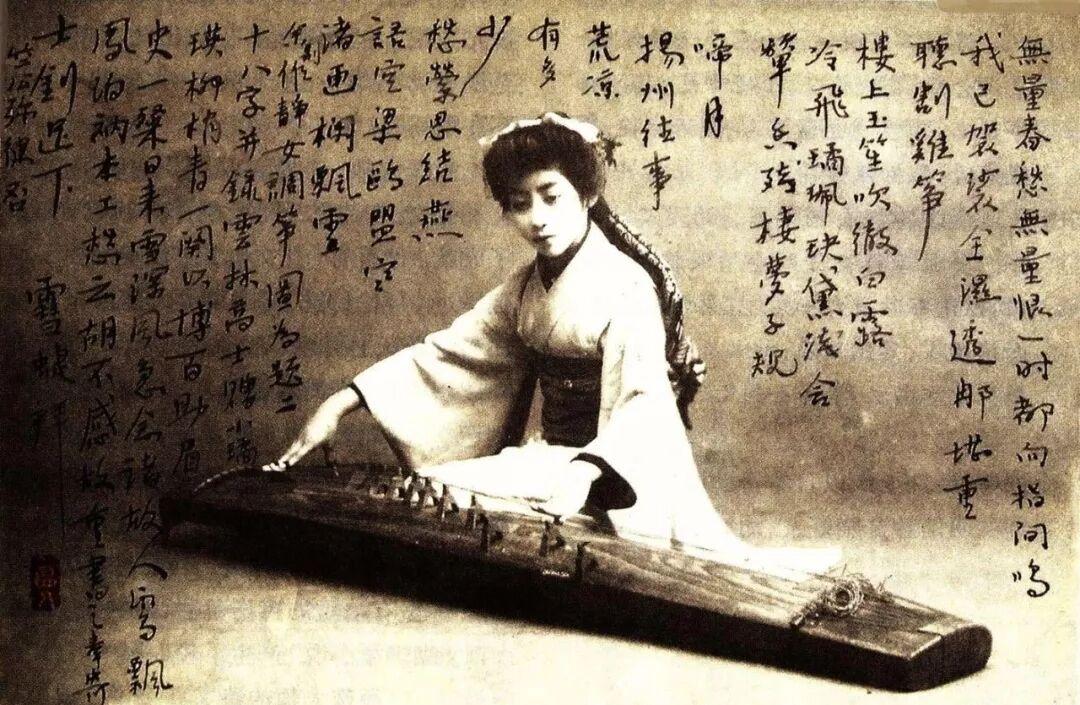 上面這張《靜女調箏圖》,就是蘇曼殊寄給好友章士釗的明信片,圖上的女子,就是蘇曼殊的日本女朋友。