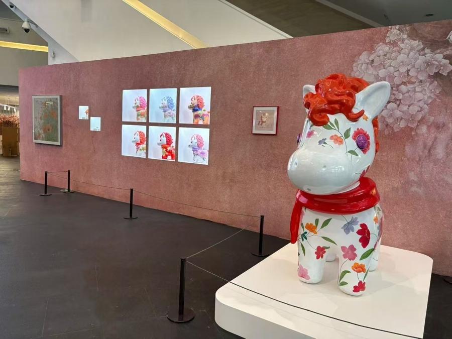 劉海粟美術館在同時舉辦三個臨展,分別爲“花開有時——鮑鶯作品展”“ACE檔案館計劃成果展——2026我們從情緒開始”“‘藝’起長大”,帶來滿格的藝術治癒力。其中,陳列在館內進門處一組以馬爲主題的玻璃鋼雕塑作品,是藝術家鮑鶯特別爲馬年創作的。
