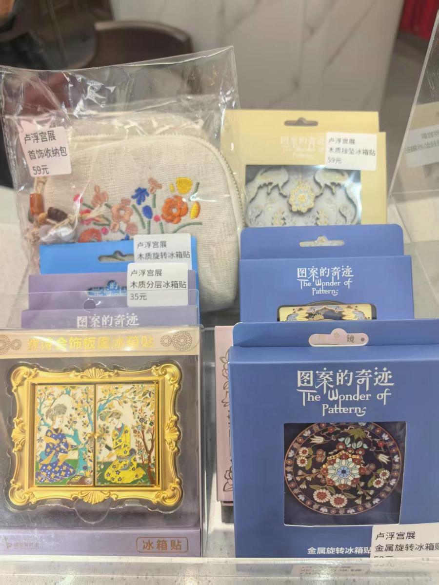 記者採訪現場,看到這樣的畫面:拖着行李箱的遊客,目光無意間撞進櫥窗,隨即被吸引走進來——那套“圖案的奇蹟”冰箱貼在燈光下很是好看。他們沒有買票走進美術館,卻在行李箱的夾層裏,帶走了一小塊來自盧浮宮的藝術記憶。