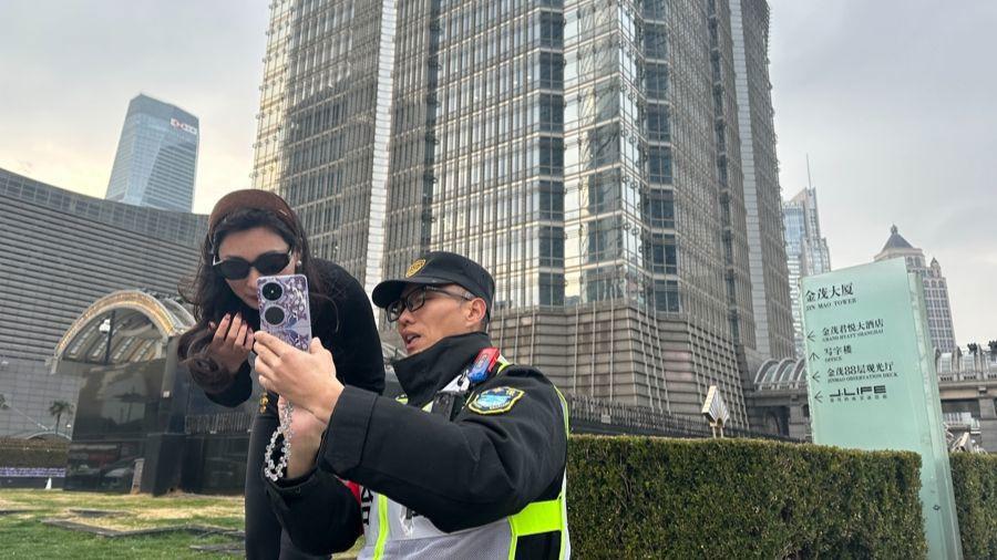 陸家嘴三件套打卡點巡邏小哥走紅網絡:“我都在崗,歡迎大家來上海過年”