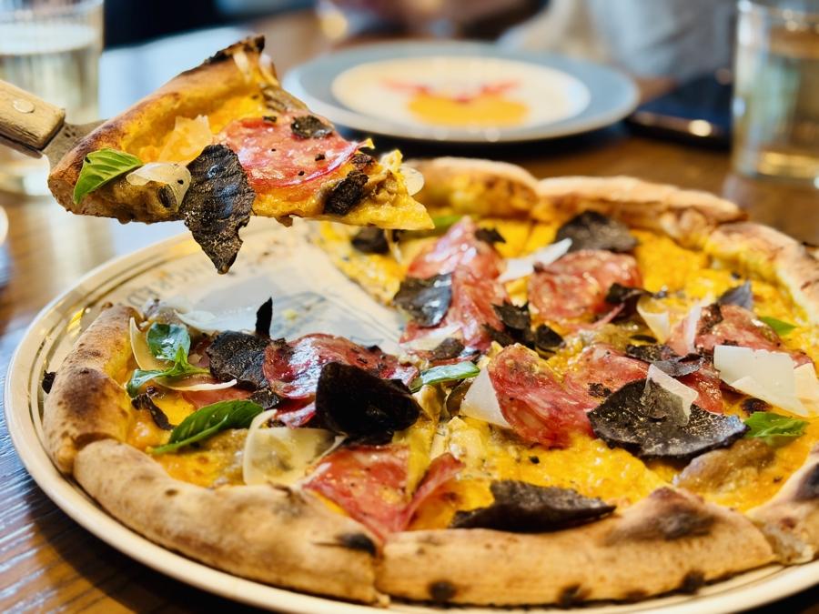 馬年限定的松露薩拉米披薩出爐。 文匯報記者張伊辰攝