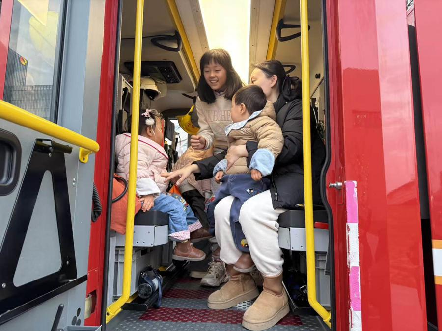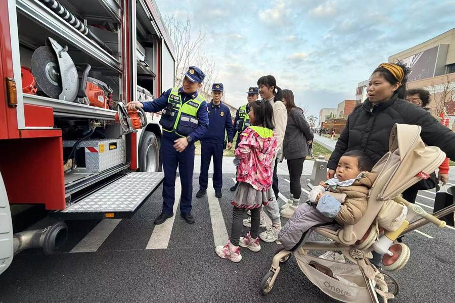 除夕,西岸夢中心遊人如織,市民們在此逛街購物看演出,歡度新春佳節。爲確保市民遊客安全度假,徐匯消防救援局全員上崗,在人流密集場所、商業綜合體派出機動力量,駐防駐守,嚴陣以待,在做好安全巡防的同時,也讓羣衆走進消防車,利用備勤時機開展消防宣傳,向市民遊客普及消防知識。