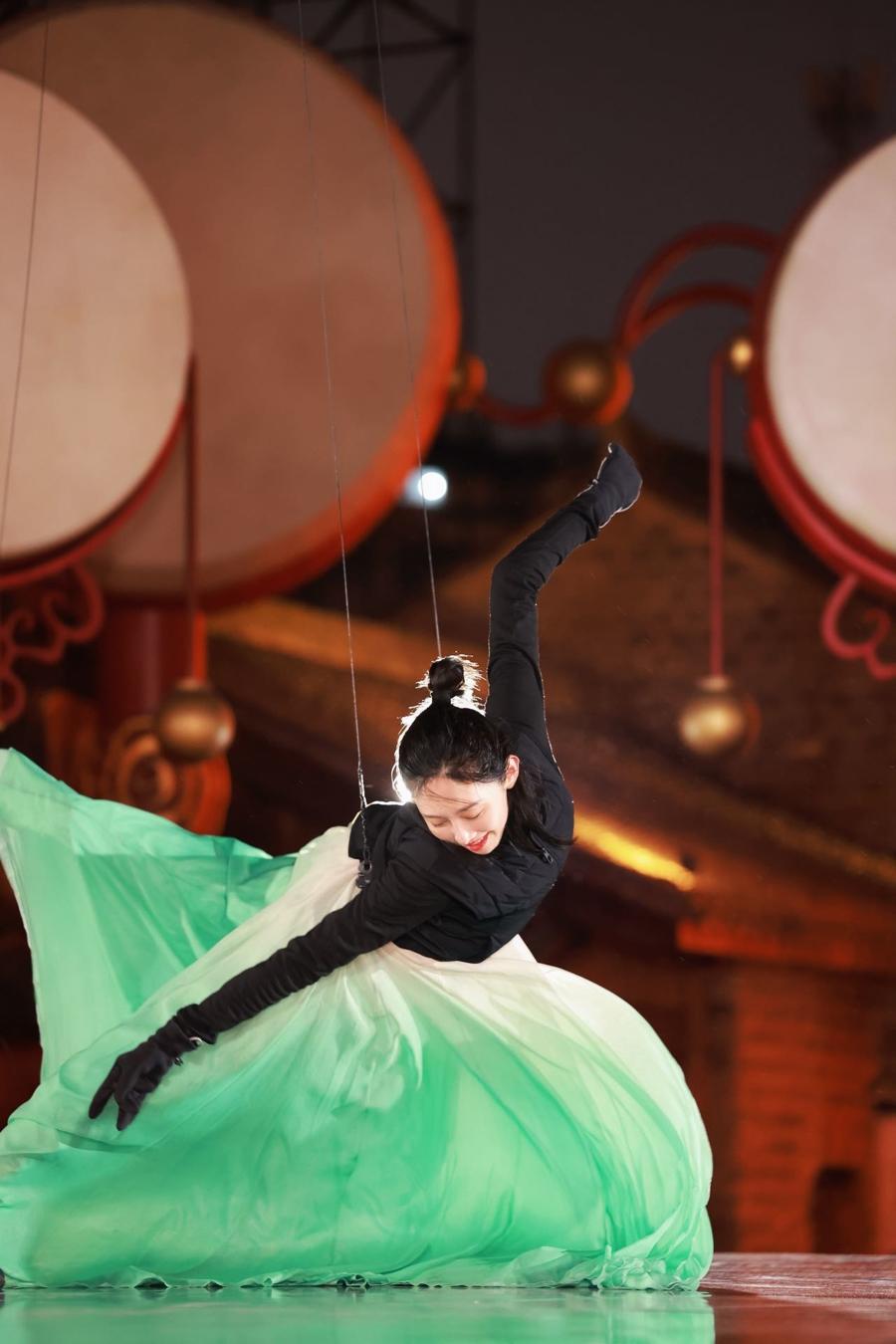 “春之神”踏響鼓聲,於半空中翩然起舞,呼喚着萬物復甦,播撒下春的希望。除夕夜,舞蹈家朱潔靜第五次登上央視春晚舞臺,在浙江義烏分會場的《世界義烏中國年》節目中驚豔亮相。此前,她曾四次登上春晚舞臺:2020年的《晨光曲》、2021年的《朱䴉》、2023年的《碇步橋》和2025年的《幽蘭》。但這一次,體驗前所未有——“這是全球首個在室外小空間,用雙3D獨立威亞完成不同軌跡、高速舞蹈的藝術表演,技術與藝術都是世界首創。”朱潔靜說。