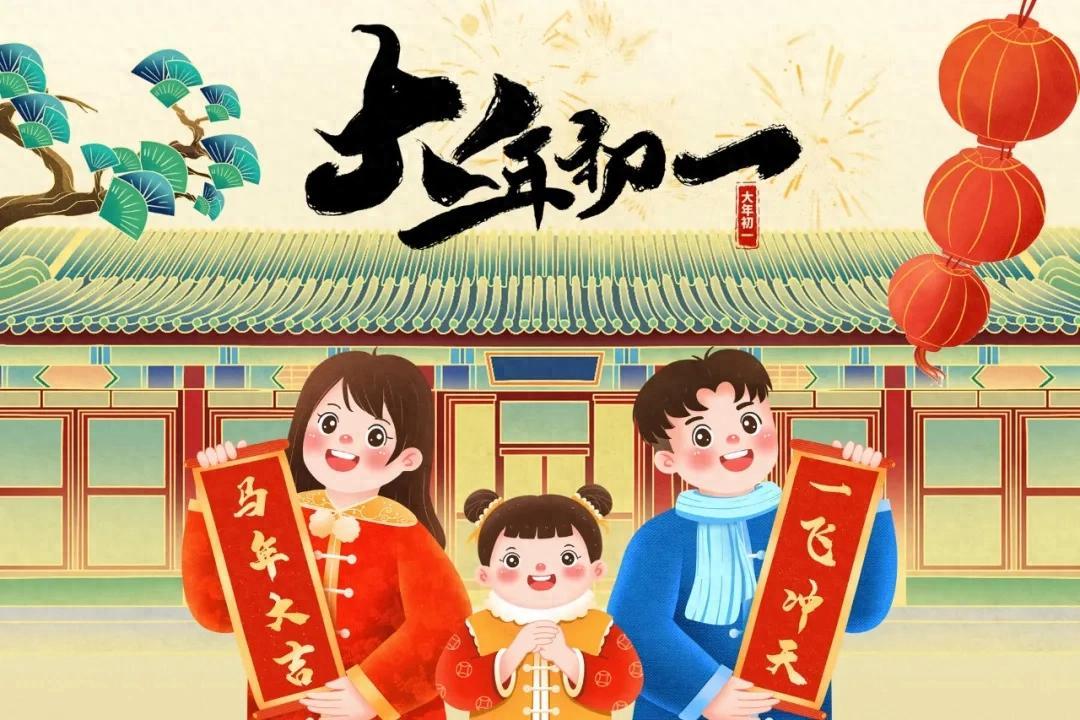 73、爆竹聲聲辭舊歲,金馬迎春送吉祥。大年初一拜大年,願你在新的一年裏,身體強壯似駿馬,生活幸福樂開花!