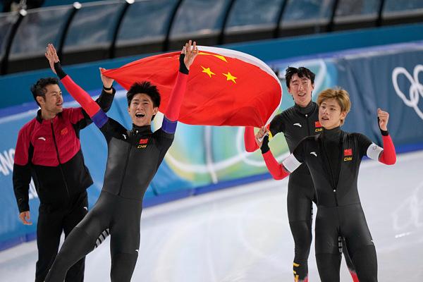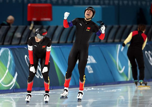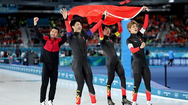這是中國速滑隊冬奧會團體項目上的首枚獎牌