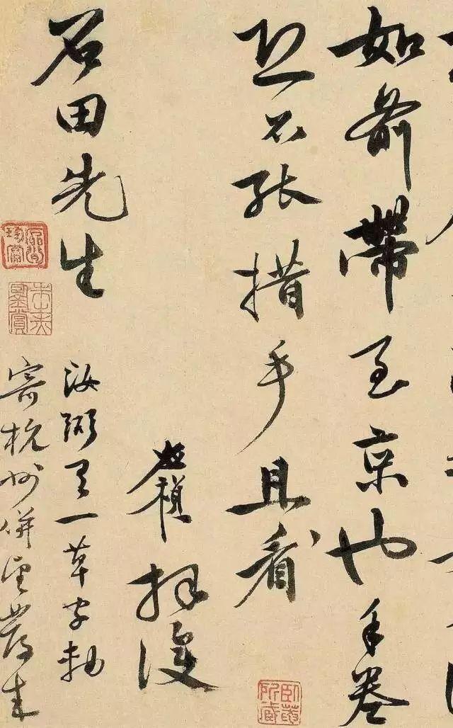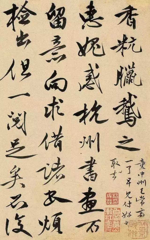 老丈人選姑爺很有意思,他一般不會選擇與自己性格互補的年輕人,他要選一個年輕的自己。文徵明性格溫和,爲人敦厚,但李應禎本人是個暴脾氣,皇帝下詔讓他寫佛經他都給拒了,說只聞九經,不聞佛經。他的書法名氣很大,很多人前來求字,但十有八九都會被他罵跑。相較之下,文徵明太“綿”了,而六根指頭的祝允明個性十足,很對脾氣。 李應禎傳世作品極少,這影響了他在後世的名氣。不過僅有的一兩幅手札,卻骨力勁健,清氣逼人,卓然大家。