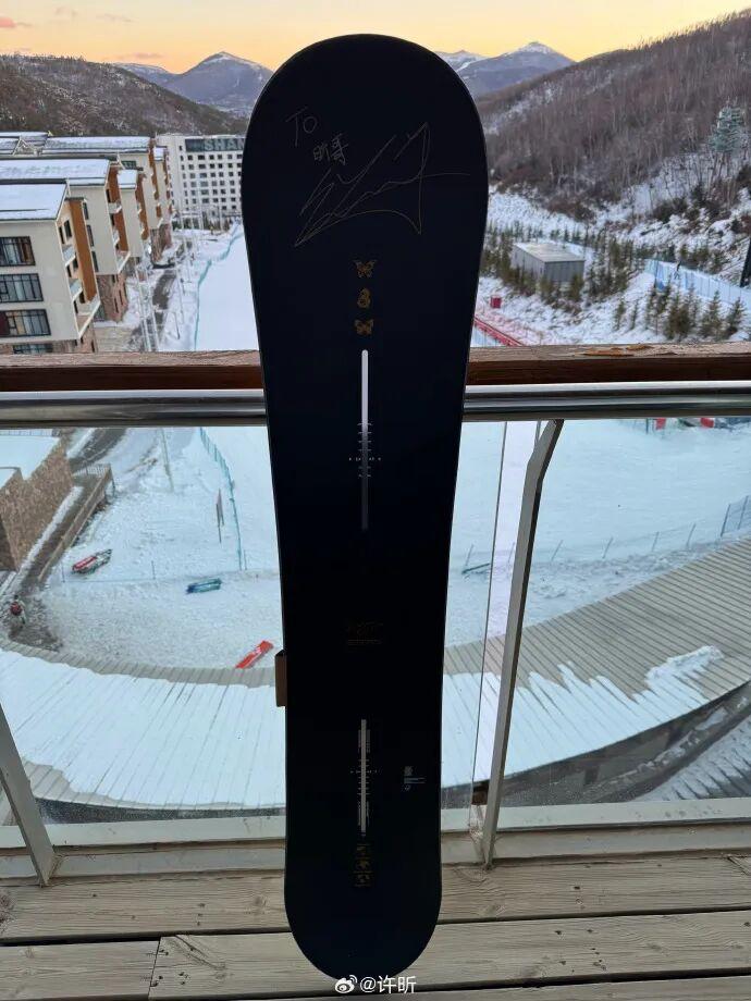 記者注意到,李現曬出的自拍中,出現了兩塊滑雪板。上面有蘇翊鳴的簽名:“To現哥”。李現表示:“小蘇這兩年送的簽名板,一直忘了發,感恩的心!李現2024年還曾經自我調侃:“學啥都快,單板除外”。