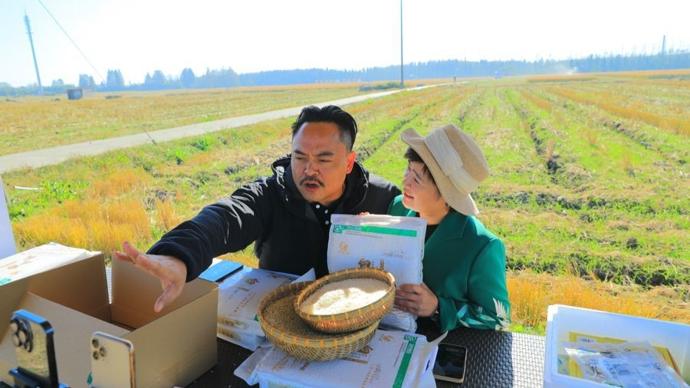 如今,芳芳源合作種植面積超600畝,全平臺粉絲超400萬,年銷售額也躍升至近3000萬元。位於金山區的赤松裏農業專業合作社擁有238畝種植基地,與吳夏斌直播團隊合作後,僅蘋果梨一個品種累計銷售就達30萬斤,年收入提升50%,徹底告別“靠天喫飯、跑市場難”的困境。“跟着吳老師,價格有保障、銷路不用愁,心裏很踏實。”合作社負責人顧方明告訴記者。呂巷鎮的“白龍米”,更是在吳夏斌助推下售出超70萬斤。