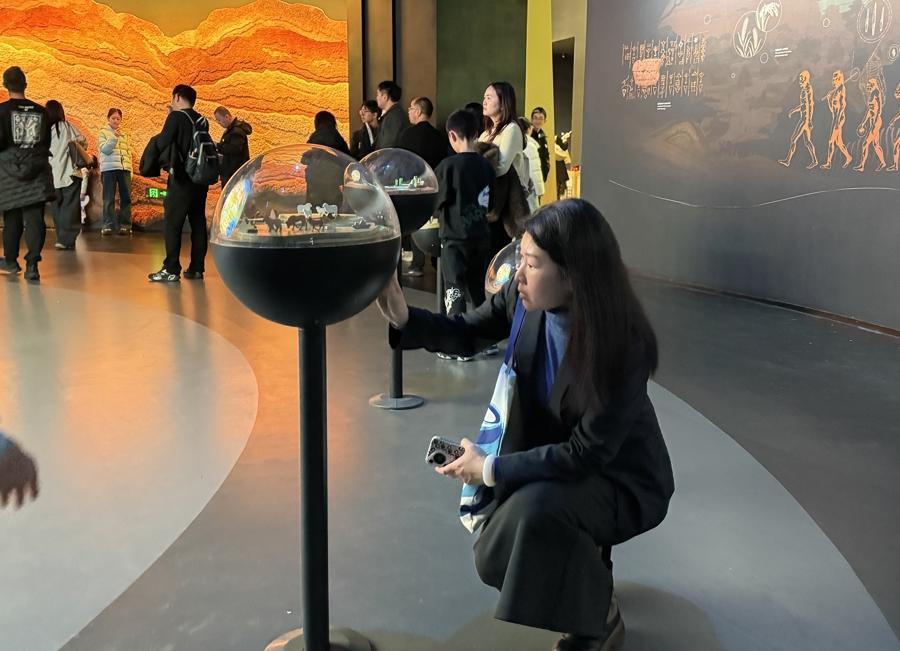 大年初一,徐蕾一邊在館內巡查,一邊配合媒體直播介紹展區亮點。鏡頭前,她對所有展項如數家珍;鏡頭之外,她的目光始終留意着展項運行狀態和人流變化。她告訴記者,整個春節期間,策展團隊的所有成員都會在館內輪流值守,所有展項的供應商也都安排了工作人員在現場待命,確保運行平穩。