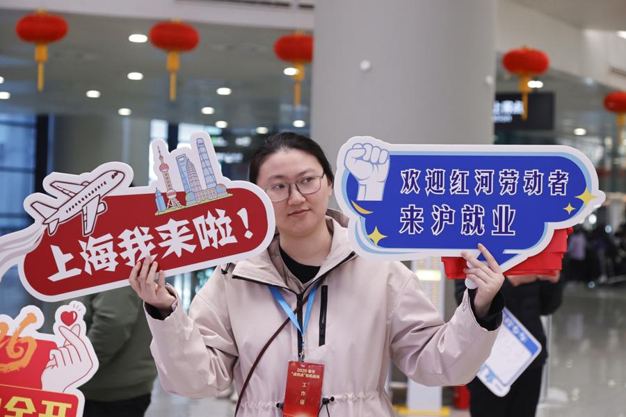 農曆丙午正月初四,一架載着百名雲南籍務工人員的飛機平穩降落在上海虹橋機場;一個多小時後,滿載369名湖南籍勞動者的高鐵專列抵達上海南站。2026年上海市春節後“點對點”返崗復工活動今天(20日)啓動。