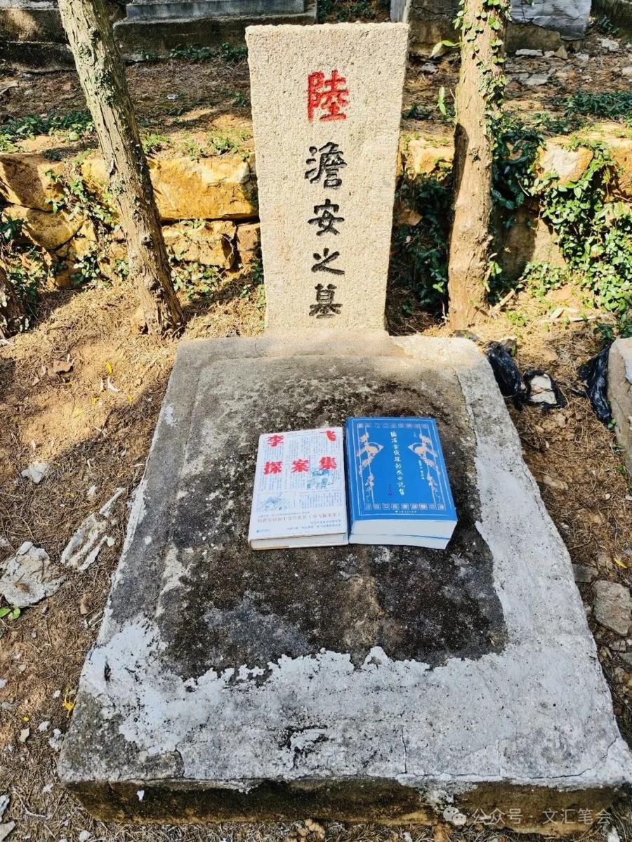 2025年清明前後,借華斯比兄參與紀錄片《但是還有書籍·第三季》的拍攝之機,我們與導演組一同再次趕赴蘇州,於東山華僑公墓楊灣墓區尋訪陸澹盦先生墓地(下圖)。華斯比兄曾整理出版過陸澹盦先生的《李飛探案集》(2021年),我們當時亦合作編校了《陸澹盦偵探影戲小說集》(二冊,2025年)。此行既爲祭掃,亦爲圓一夙願——將陸澹盦先生生前散佚之舊作再度彙集付梓,既是告慰先靈,也希望藉此與廣大當代讀者共享陸氏魅力十足的光影文字。