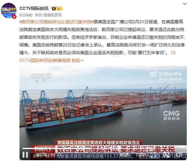 據@CCTV國際時訊 消息, 在美國最高法院裁定美國政府大規模關稅政策違法後,數百家公司已提起訴訟,要求退還此前爲特朗普政府關稅支付的款項。但有經濟學家指出,目前企業申請退還已繳關稅的流程尚不明確。