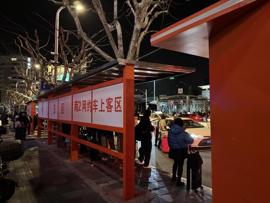 此外,上海站還攜手網約車平臺,對南廣場網約車上車點進行了系統性升級改造,並於春運前正式啓用。南廣場原有南2網約車上車點進行系統性改造與全面優化,重新規劃了物理空間,設置更清晰、寬敞、便捷的上車點位,有效分流旅客,減少步行距離與等候時長。記者現場看到,改造後的南廣場還增設了一系列網約車上車點的指引標識,方便旅客快速前往候車點。未來還考慮結合數字化改造和網約車平臺大數據,爲優化交通配套和提升乘客感知度提供參考。
