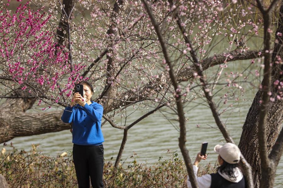 馬年春節小長假最後兩天,申城迎來晴好天氣,氣溫攀升至20攝氏度以上。和煦春風爲城市添上濃濃春意,市民紛紛走出家門,踏青出遊。滬上各大公園成爲熱門打卡地。各大公園推出賞花、非遺互動、生肖主題體驗等豐富新春活動。早櫻、梅花等早春花卉次第含苞,處處洋溢着春日生機。