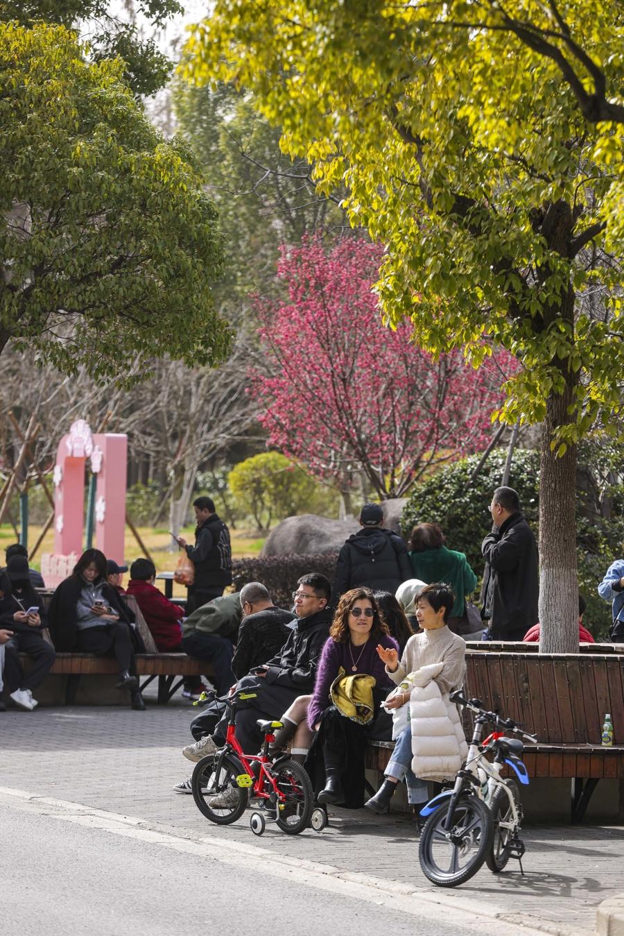 在晴暖春日裏,市民以遊園踏青的方式告別春節假期,在自然美景與歡樂互動中舒緩心情、積蓄活力,以愉悅的狀態迎接復工復產的新開始。