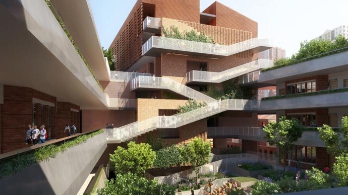 以比樂中學爲例,項目擬新建1所36班規模的中學,自西向東分兩期實施,建成一個低矮建築羣爲特色的校區,保留老虎窗、過街樓等原始校舍建築風貌,新增兩層地下室、運動場地等。同濟大學科技中學是一所以STEM教育爲特色的市實驗性示範性公辦高中,由於校址地下空間爲地鐵4號線,故而設計建造兩座單體建築,以架空連廊進行空間串聯,計劃於今年下半年開工。