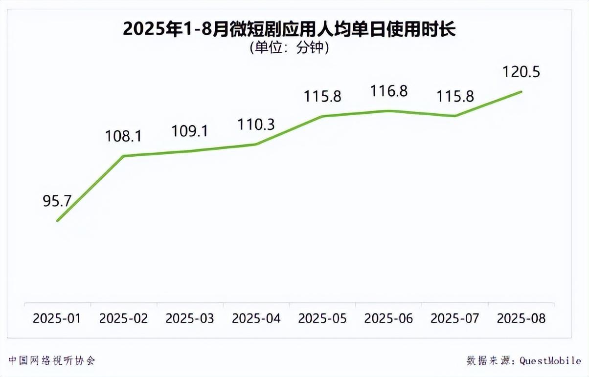 2025年,短劇的總用戶數已接近7億,短劇APP的人均單日使用時長高達120.5分鐘。相當於平均每個用戶每天用碎片時間,可以“刷完”一部標準時長的電影。而在大片迭起的2025年,人均觀影頻次也僅爲2.02次,即一年只看兩部電影。