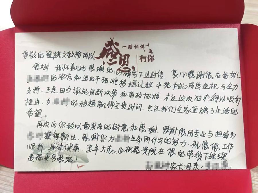 “感謝醫生,讓我們全家重燃了生活的希望!”思思媽媽在向翟曉文教授團隊致謝的賀卡上如是寫道。