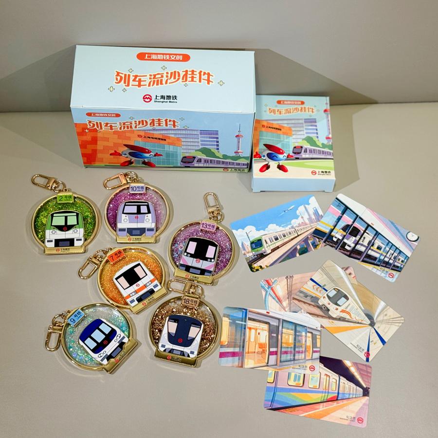 “盲盒裏面裝的是上海地鐵列車流沙掛件,包括6款常規款與1款隱藏款。每款均復刻了上海地鐵列車的車頭外觀:2號線的清新綠、7號線的溫暖橙、10號線的典雅紫、13號線的活力粉、9號線的深邃藍、18號線的時尚金……”上海地鐵博物館副館長郭震告訴記者,每款盲盒中都帶有專屬的紀念個性卡,可免費乘坐上海地鐵一次。同時,紀念卡片上的地鐵插畫清新細膩,或展現列車馳騁都市的動感身姿,或呈現定格站臺的繁華光影,將上海地鐵的獨特魅力濃縮於方寸之間,同樣具有收藏價值。