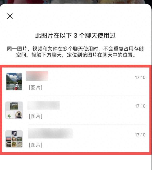據介紹,界面上還會出現說明:“同一圖片、視頻和文件在多個聊天使用時,不會重複佔用存儲空間。”