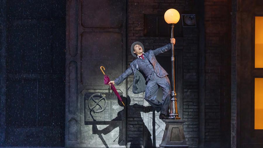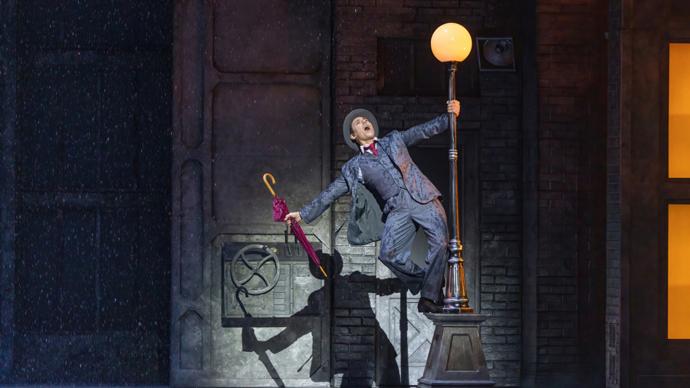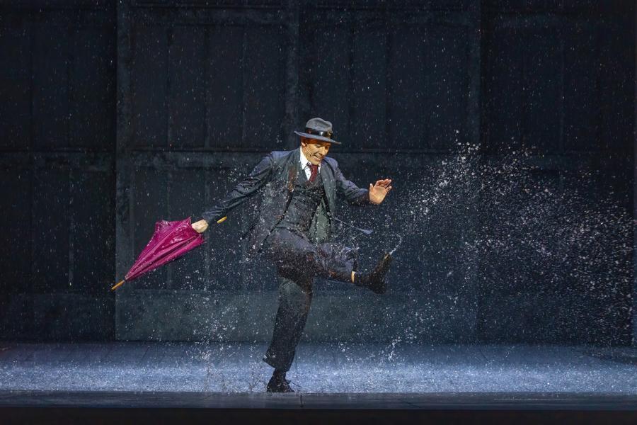 格蘭特·阿米拉爾二度飾演男主角唐·洛克伍德。他身着經典禮服,在6噸恆溫水打造的雨幕中持傘而歌,踢踏舞步掀起朵朵水花。“吉恩·凱利塑造的‘唐’是電影史上最經典的角色之一。我不僅要儘可能還原銀幕形象,還要加入自己設計的小細節,帶給當下觀衆更多新鮮感。”格蘭特笑言,“雨中獨舞安排在整段高強度表演之後。當溫水化作雨幕淋下,我不會覺得冰冷,反倒有種恰到好處的涼爽。”