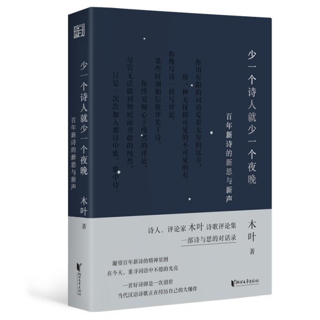 本書是詩人、評論家木葉近年來創作的詩歌評論合集,收錄其對百年新詩脈絡中重要詩人與詩學命題的批評文字。他以“詩人篇”與“詩思篇”編織起結構的經緯,目光穿梭於百年新詩的宏大星圖之間,既凝視馮至、穆旦、海子、西川、鄭敏等一個個閃亮的詩學星座,也叩問“未來詩學”“AI與詩歌”等流動而迫切的當代詩學命題,試圖辨認一片可供棲居的精神夜空。