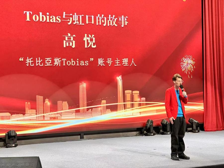 來自比利時的音樂人“託比亞斯Tobias”賬號主理人高悅從“中國好聲音”走進觀衆視野,之後常在四川北路一帶演出,現在作爲“滬語博主”常常介紹虹口的歷史、美食與文化。 文匯報記者 單穎文攝