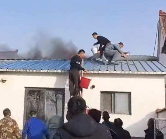這時,宋子文發現,之前騰空而起的火焰早已引燃瓦房房頂下方的木條,產生陰燃。他又一片片揭開瓦片,澆水滅火,防止復燃。