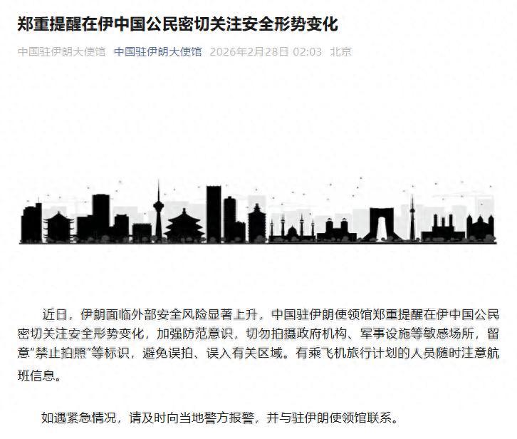 中國駐伊朗大使館,凌晨再次發文提醒!