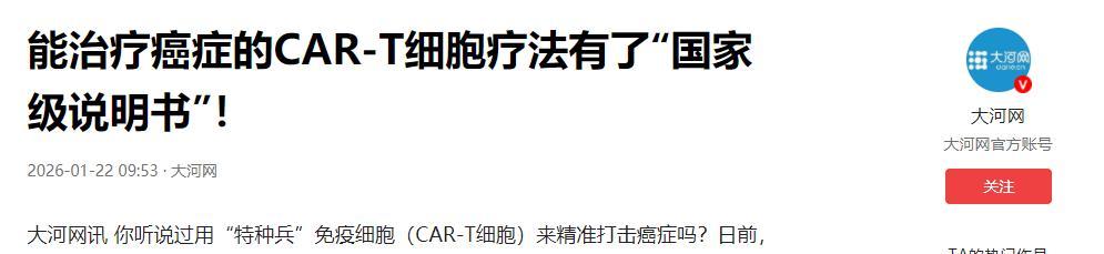 能治療癌症的CAR-T細胞療法有了“國家級說明書”!