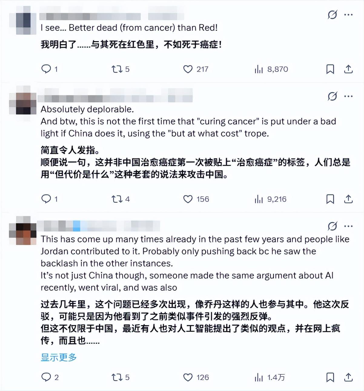 X平臺上,一條“癌症治癒不該被政治化”的帖子迅速走紅。
