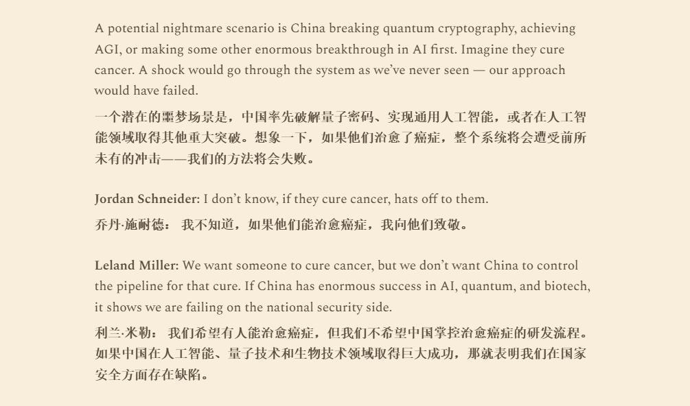 對美國精英來說,比起能不能治好癌症,他們更在意的是:一旦失去科技優勢,美國還怎麼維持世界霸主的地位?這,纔是米勒這些人真正害怕的東西。