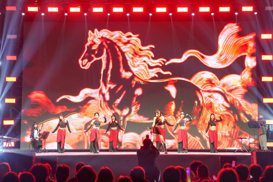 傳統文化在臨港新片區這片科創沃土上煥發新潮活力。值得一提的是,本場活動由入駐新片區的國內頂尖音樂製作團隊太樂有你全流程打造,以旗下TU LIVE演出廠牌及自研FlowTU音樂AI工具創作的十首原創曲目貫穿全程,以“精衛立城”爲主線,傳統民樂與電子合成器激情碰撞。由臨港產業招商、工程建設、酒店服務等一線工作者組成的港城青年合唱團演繹《星空的呼喚》,深情唱出建設者的心聲。晚會最高潮,職業鼓手朱彬赫與《明日之子》全國亞軍鞠翼銘帶來燃炸全場的雙鼓秀,讓現場青春脈搏與城市心跳同頻共振。