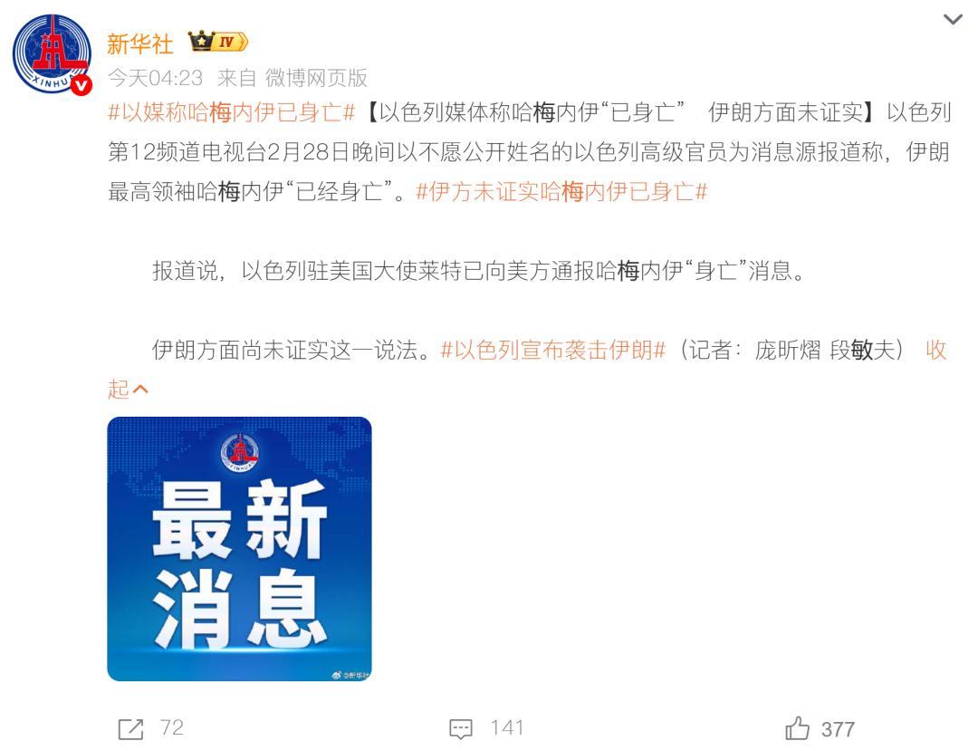 據此前報道,以色列總理內塔尼亞胡28日晚發表講話稱,越來越多跡象顯示哈梅內伊“已不在人世”。
