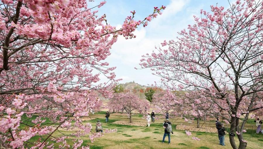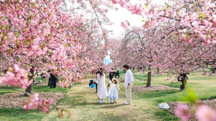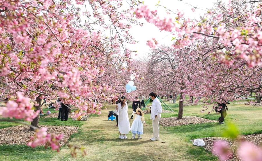 辰山植物園河津櫻盛放,800米粉色大道浪漫迎客
