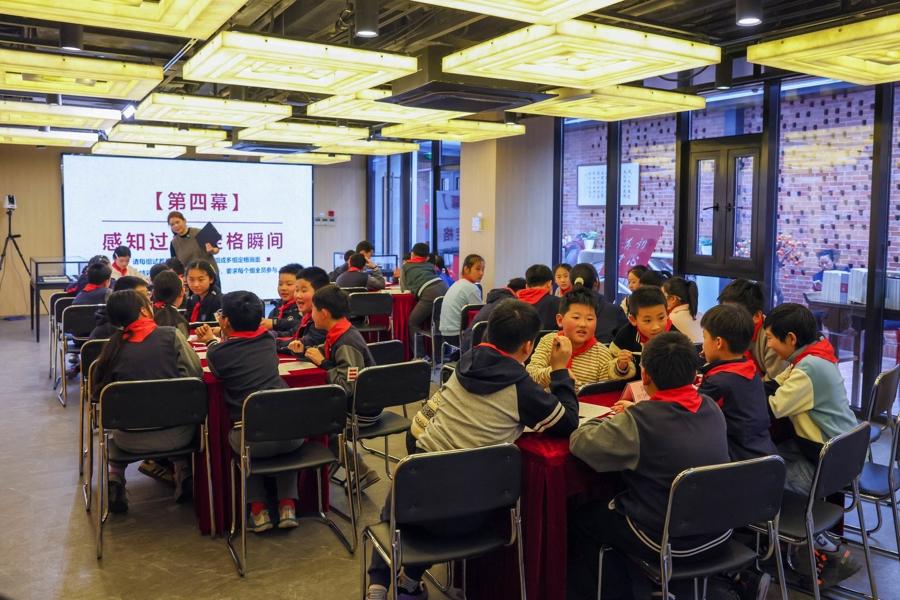 40餘名小學生化身“文物代言人”感知、瞭解、傳播“左聯五烈士”的故事。 文匯報記者 葉辰亮攝